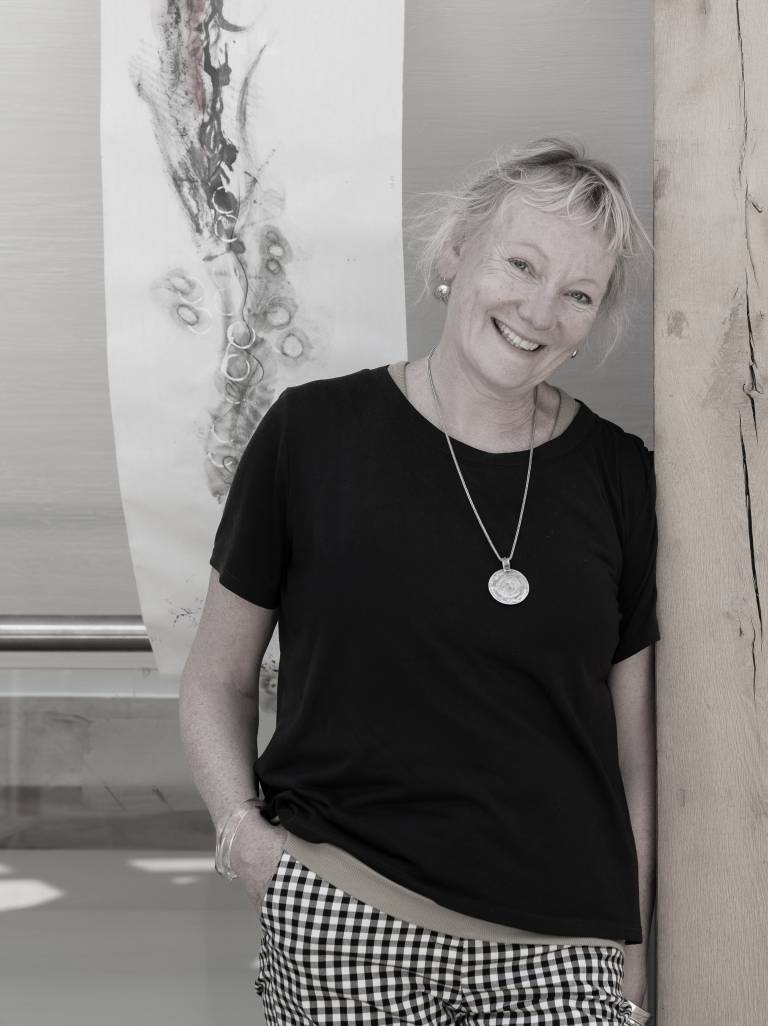 "During lockdown, Bev Campbell noticed how the birds sang differently; they were louder, their phrases more assertive. Her son made recordings of the dawn chorus, which inspired a new body of work for Campbell. Her minimal paintings are based upon a unique alphabet of sound she has created. Listening to this recording, she visualised different notes as different marks, creating a visual alphabet. These note-marks are then recomposed on Japanese paper or linen. Her pieces balance sensuality and simplicity: there is a tension in her canvases, their minimal design allowing the viewer space and light. Birdsong symbolises a primeval connection to the landscape. It was a sound which signalled to neolithic man that a landscape was safe to inhabit. Birdsong still carries this connotation of optimism, a feeling of being held by the landscape: you hear the birds, and you are not alone." (interviewed by art writer Kate Reeves -Edwards)