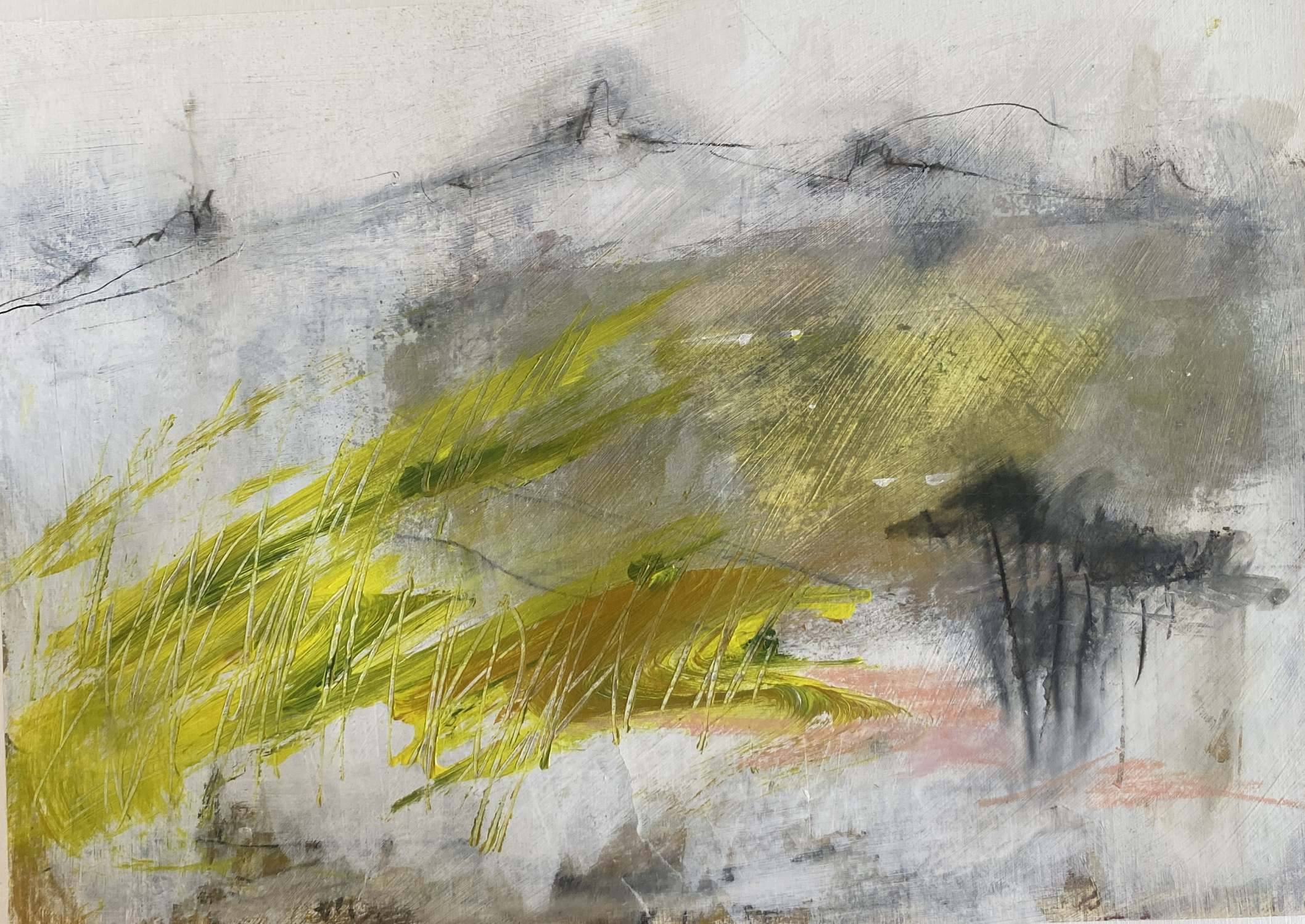 a piece painted in winter . Partly painted outside and part in the studio. The area above Thurstone Ridge on Dartmoor. Where the ravens nest in the Scotts pines.