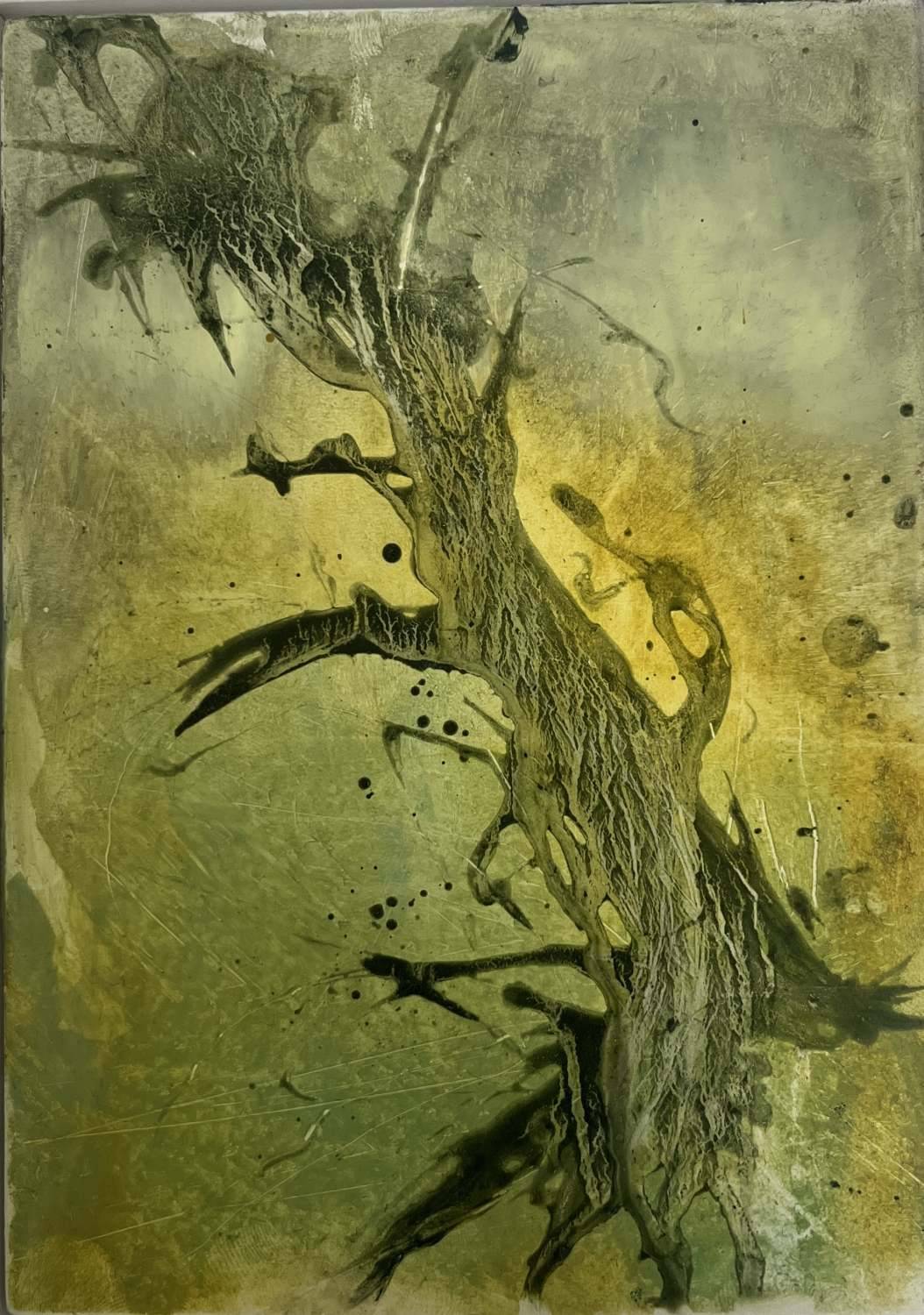 A piece painted en plein air in February 2025, when the trees were still dormant and the air cold. Raven's were flying over the meadow but the lane was deep with puddles.